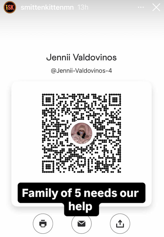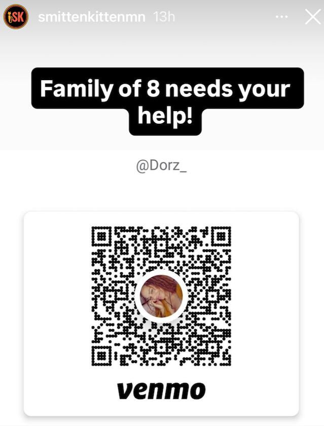 Below are posts taken from the reels on the @smittenkitten Instagram page. These are Venmo donation accounts that they have vetted of families and people in need in Minnesota.