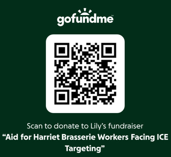 Aid for Harriet Brasserie Workers Facing ICE TargetingFrom GoFundMe Page: